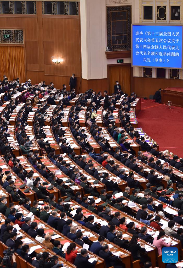 The meeting adopted a decision on the quota and election of deputies to the 14th NPC, the method for the Hong Kong Special Administrative Region (SAR) to elect its deputies to the 14th NPC, as well as the method for the Macao SAR. According to the decision, the election of deputies shall be completed in January 2023.