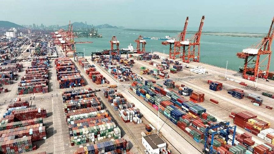 Photo taken on March 1, 2022 shows a container terminal of the Lianyungang Port in Lianyungang city, east China’s Jiangsu province. (Photo by Wang Chun/People's Daily Online)