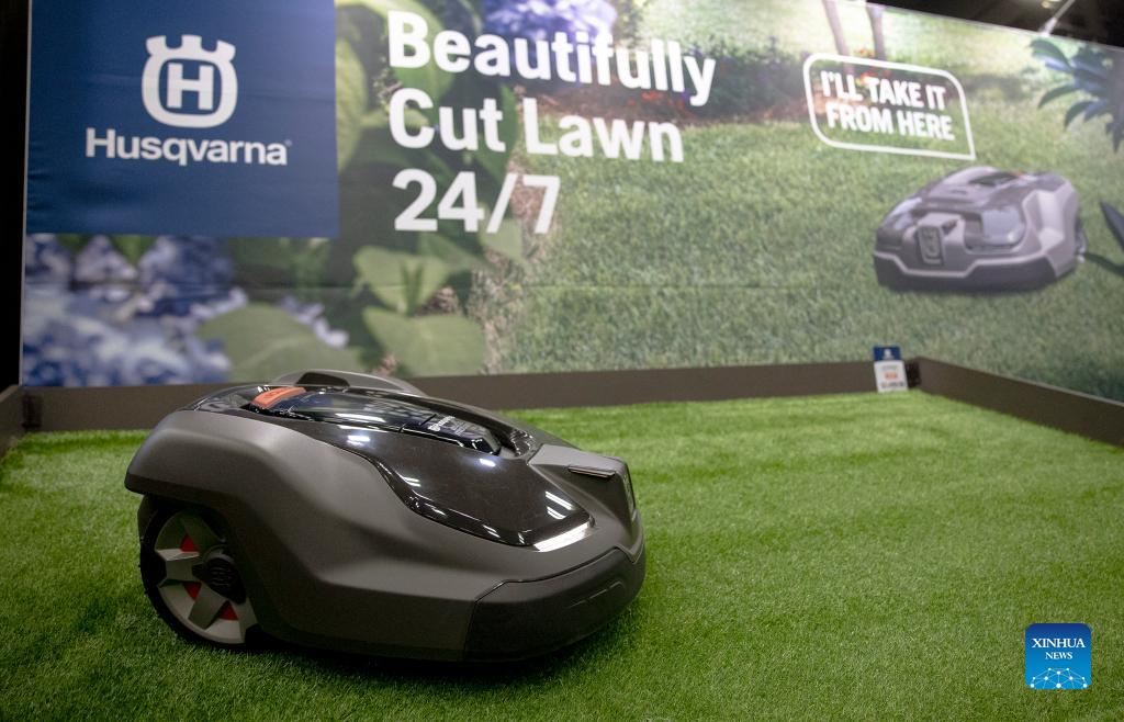 A robotic lawnmower is seen during the Creative Industries Expo at South by Southwest (SXSW) Conference and Festivals in Austin, Texas, the United States on March 13, 2022. The Creative Industries Expo at SXSW Conference and Festivals opened on March 13, featuring content aimed to promote discovery, education and inspiration. (Photo by Nick Wagner/Xinhua)