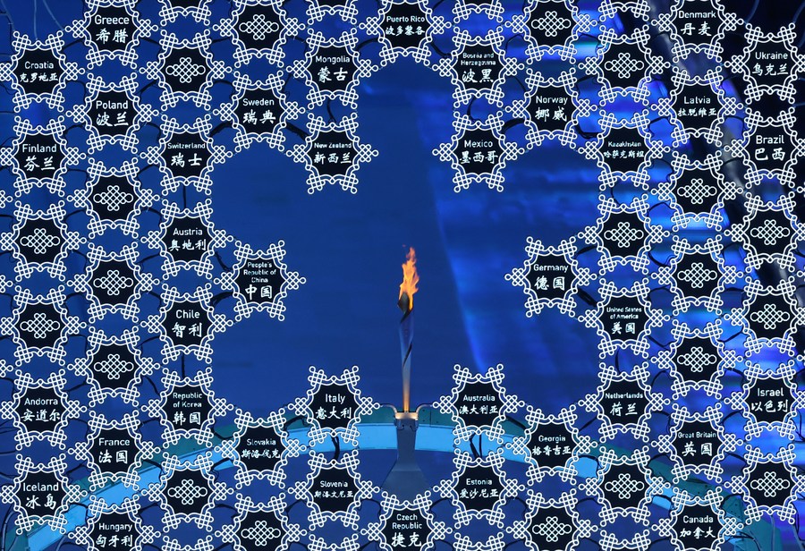 The Paralympic Winter Games Cauldron is lit during the opening ceremony of the Beijing 2022 Paralympic Winter Games at the National Stadium in Beijing, capital of China, March 4, 2022. (Xinhua/Jia Haocheng)