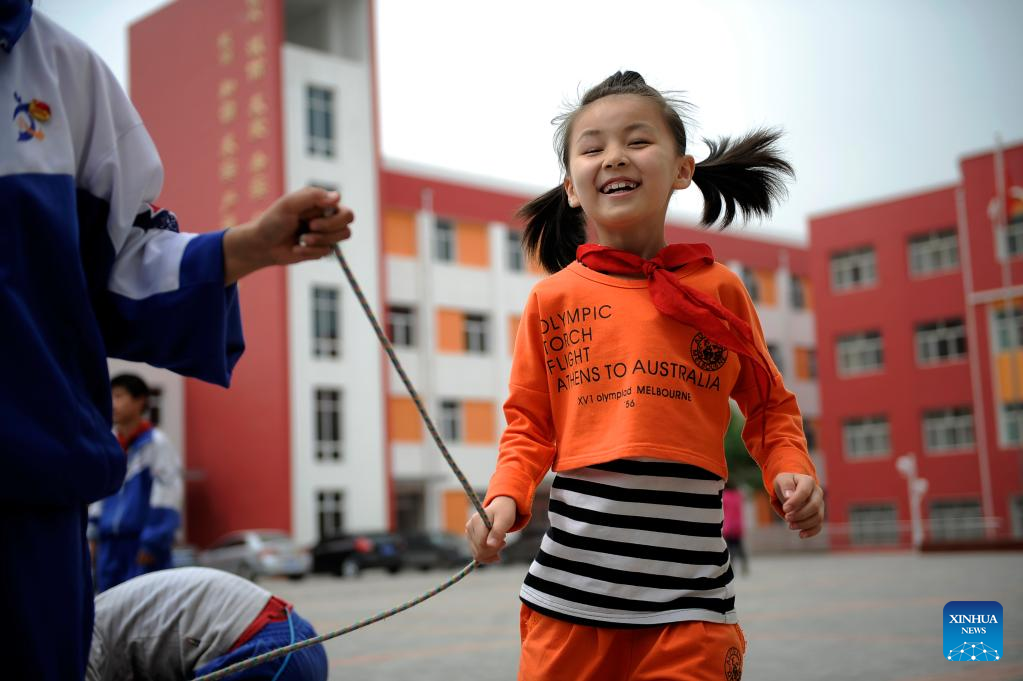 Ma Yifei plays games with friends in Ningxia Special Education School in Yinchuan, northwest China's Ningxia Hui Autonomous Region, May 21, 2013.(Photo by Li Jing/Xinhua)