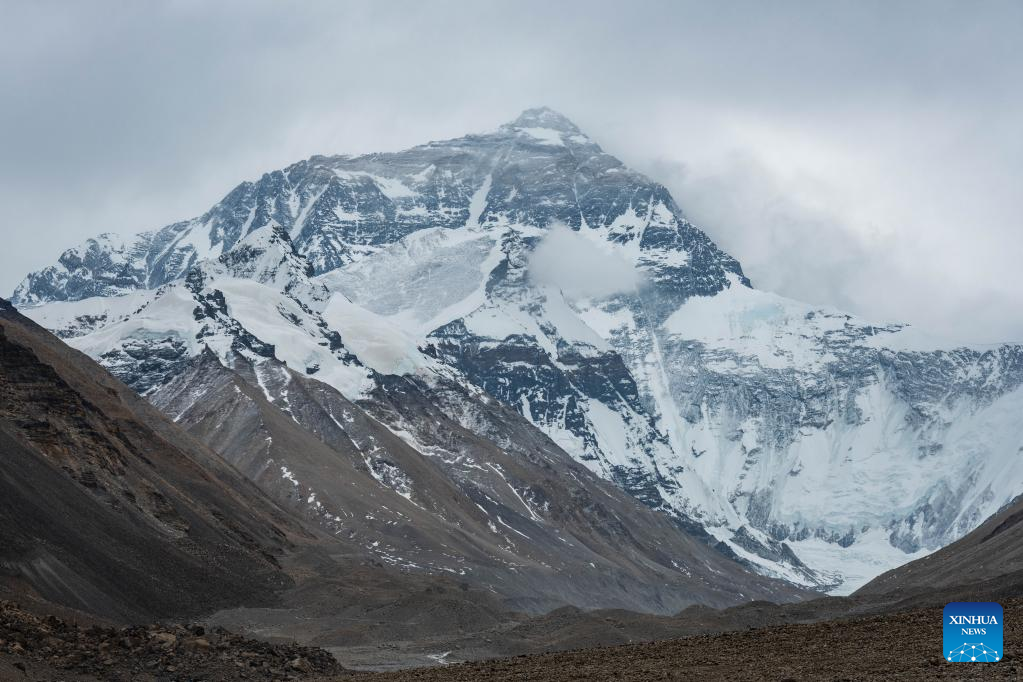 Photo taken on March 14, 2022 shows a view of Mount Qomolangma seen from the Mount Qomolangma base camp in southwest China's Tibet Autonomous Region. (Xinhua/Zhou Dixiao)