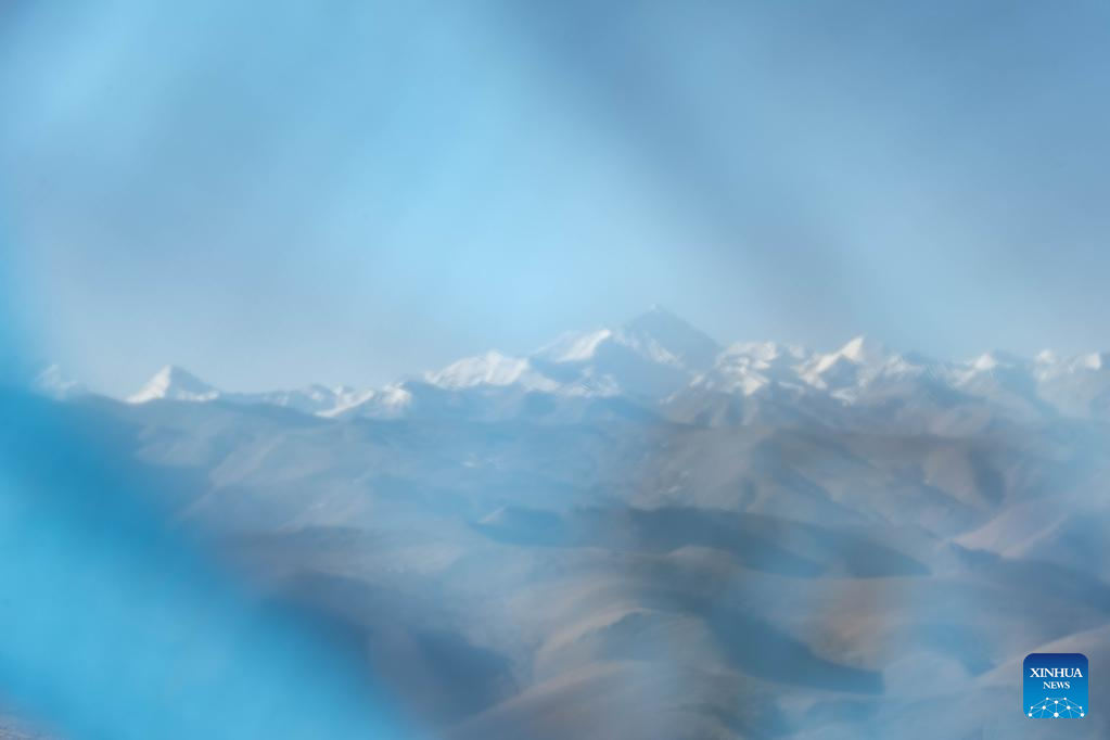Photo taken on March 15, 2022 shows a view of Mount Qomolangma seen from Xigaze City of southwest China's Tibet Autonomous Region. (Xinhua/Zhou Dixiao)