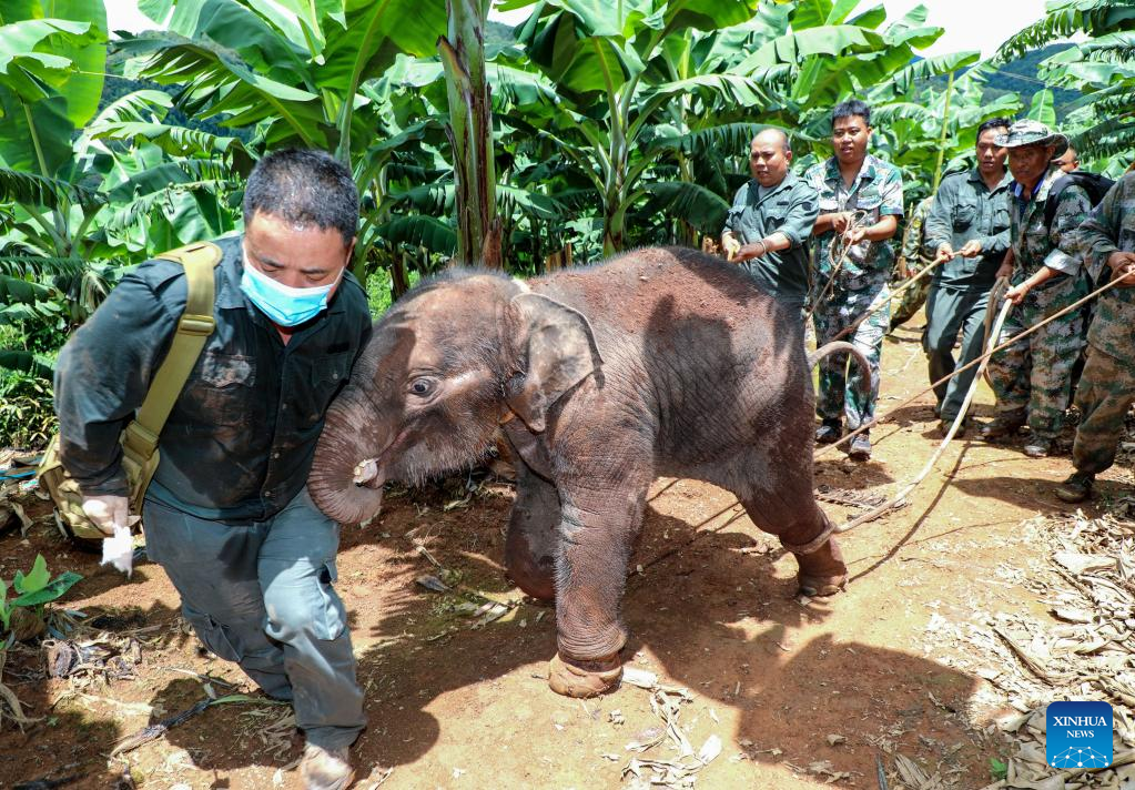 Wild Asian elephants rescued in Xishuangbanna, SW China