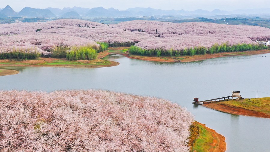 700,000 cherry trees in full blossom in SW China's Guizhou