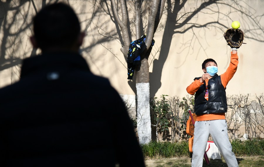 Citizens exercise in the open air within their community classified as a low-risk area for COVID-19 in Xi'an, northwest China's Shaanxi Province, Jan. 11, 2021. (Xinhua/Li Yibo)