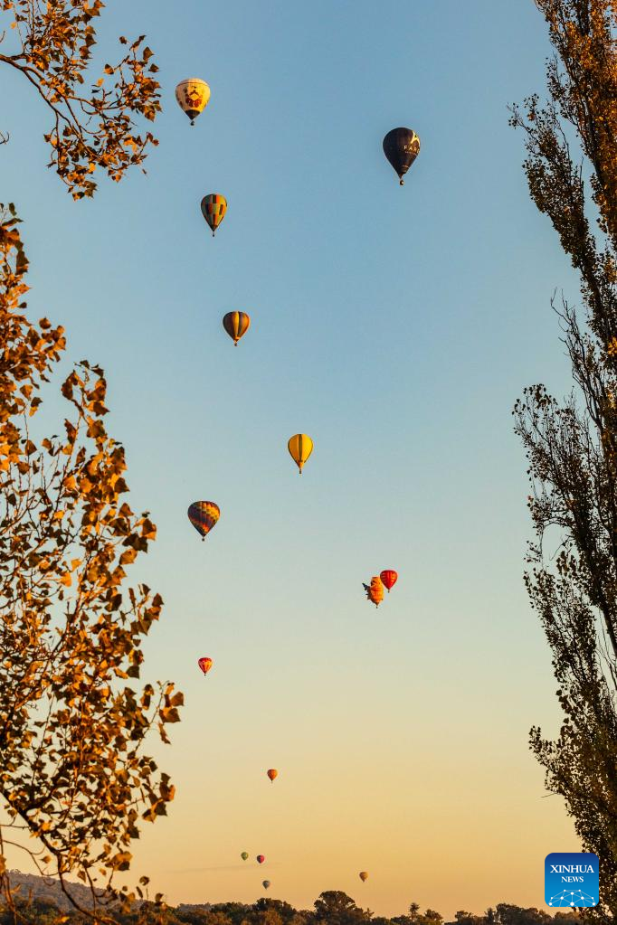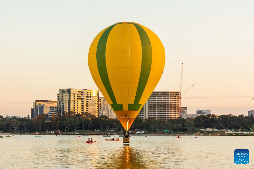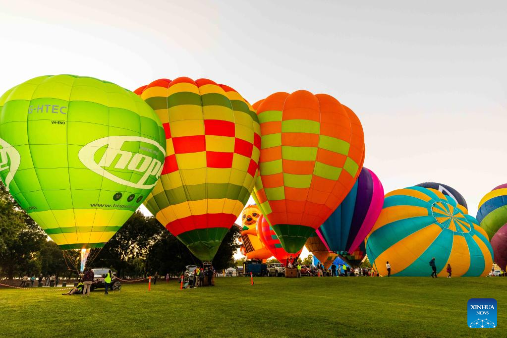 Hot air balloons are seen during the annual Canberra Balloon Spectacular festival in Canberra, Australia, March 18, 2022. The annual Canberra Balloon Spectacular festival, a hot air balloon festival celebrated in Australia's capital city, is held this year from March 12 to 20. (Photo by Chu Chen/Xinhua)