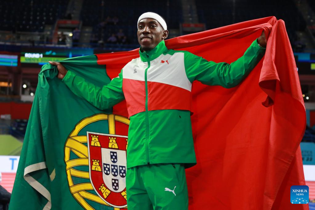 Pedro Pichardo of Portugal competes during the men's triple jump final at the World Athletics Indoor Championships Belgrade 2022 in Stark Arena, Belgrade, Serbia, March 18, 2022. (Xinhua/Shi Zhongyu)