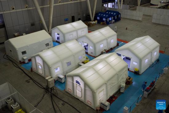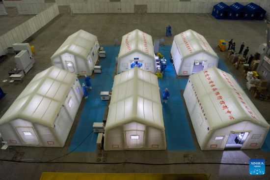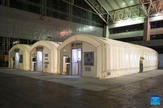 Photo taken on March 18, 2022 shows mobile tents of a mobile laboratory for nucleic acid test in Harbin, northeast China's Heilongjiang Province.