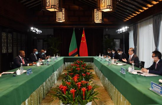 Welcoming Kakubo as the first foreign minister of a sub-Saharan African country to visit China since the pandemic began, Wang said China supports Zambia's independent choice of a development path suited to its national conditions.