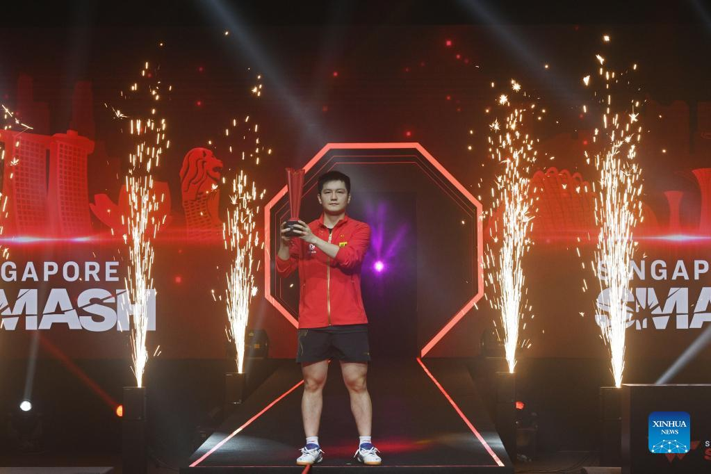 SINGAPORE, March 20 (Xinhua) -- All-time leading team China swept five titles on offer at the World Table Tennis (WTT) Singapore Smash after Chen Meng and Fan Zhendong came out the winners in the women's and men's singles respectively through seven-game thrillers here on Sunday.