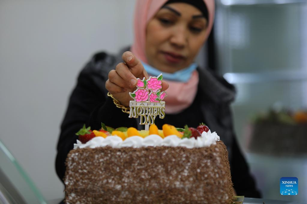A woman prepares a cake for Mother's Day in Beirut, Lebanon, on March 20, 2022. Lebanon and some other Arab countries celebrate Mother's Day on March 21. (Xinhua/Bilal Jawich)