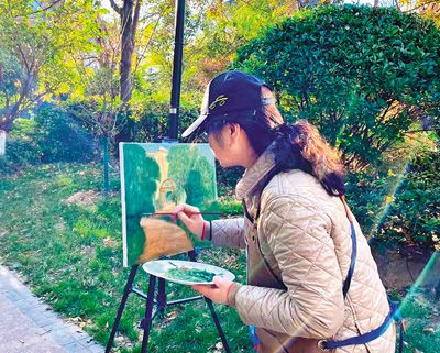 Shan takes oil painting classes mainly in her spare time, such as watching instructional guide videos during lunch breaks and practicing during her off-work hours. “There is a flexible learning timetable and the guide videos can be played repeatedly for us to better absorb the knowledge,” Shan expressed, adding that the courses are cost-effective and teachers from arts schools were invited to give classes to them.
