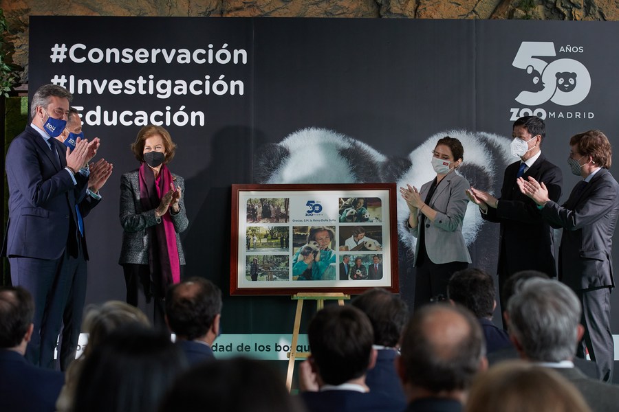 Queen Sofia of Spain, accompanied by Chinese Ambassador Wu Haitao, Mayor of Madrid Jose Luis Almeida, and Madrid's Regional President Isabel Diaz Ayuso, visited the Zoo Aquarium. The event coincided with the opening ceremony of the zoo's 50th anniversary celebrations.