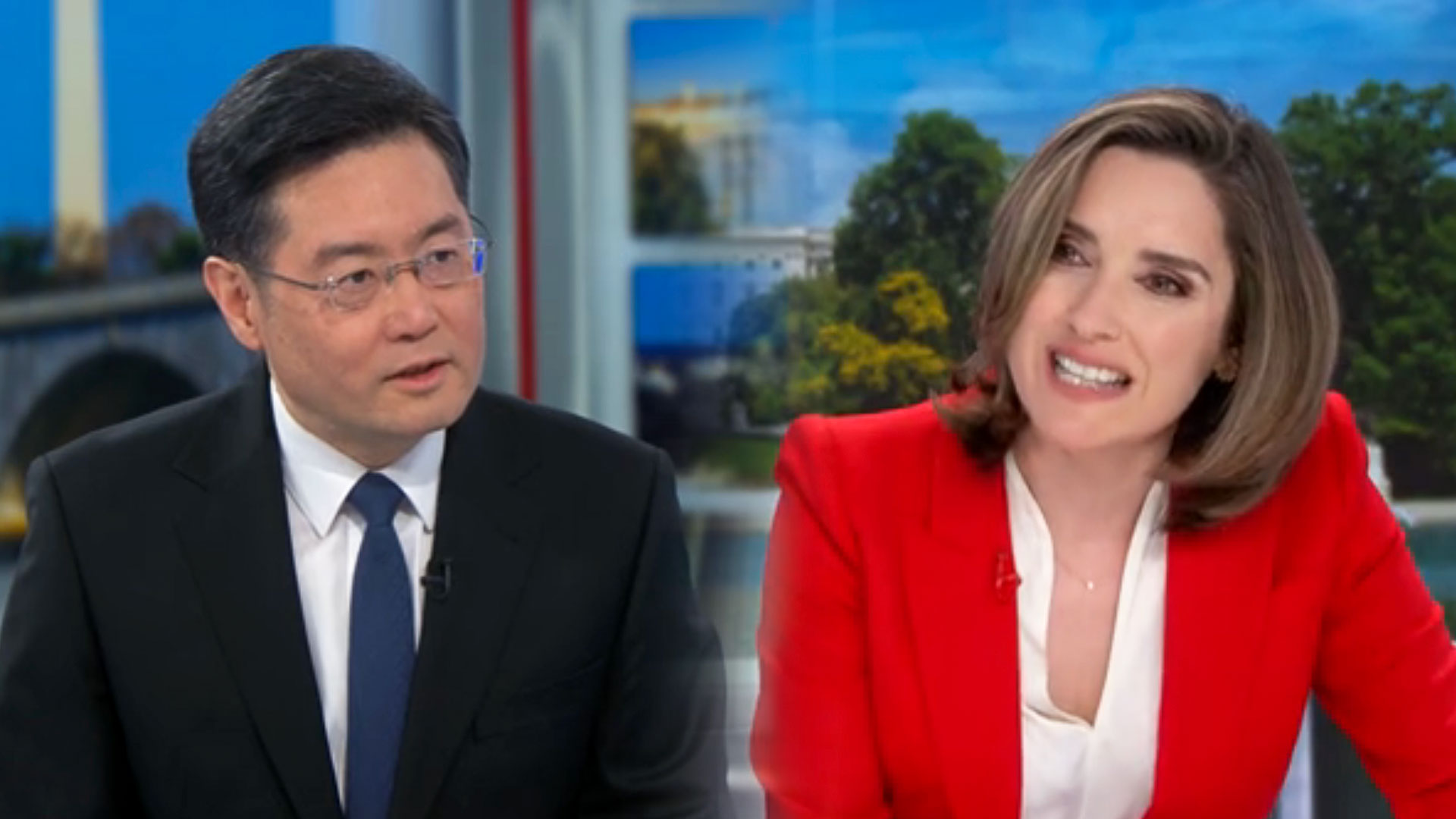 Chinese Ambassador Qin Gang appeared on CBS News program "Face the Nation" hosted by the channel's news anchor Margaret Brennan, to put out Beijing's position on Russia-Ukraine conflict. (Photo/CGTN Graphics)