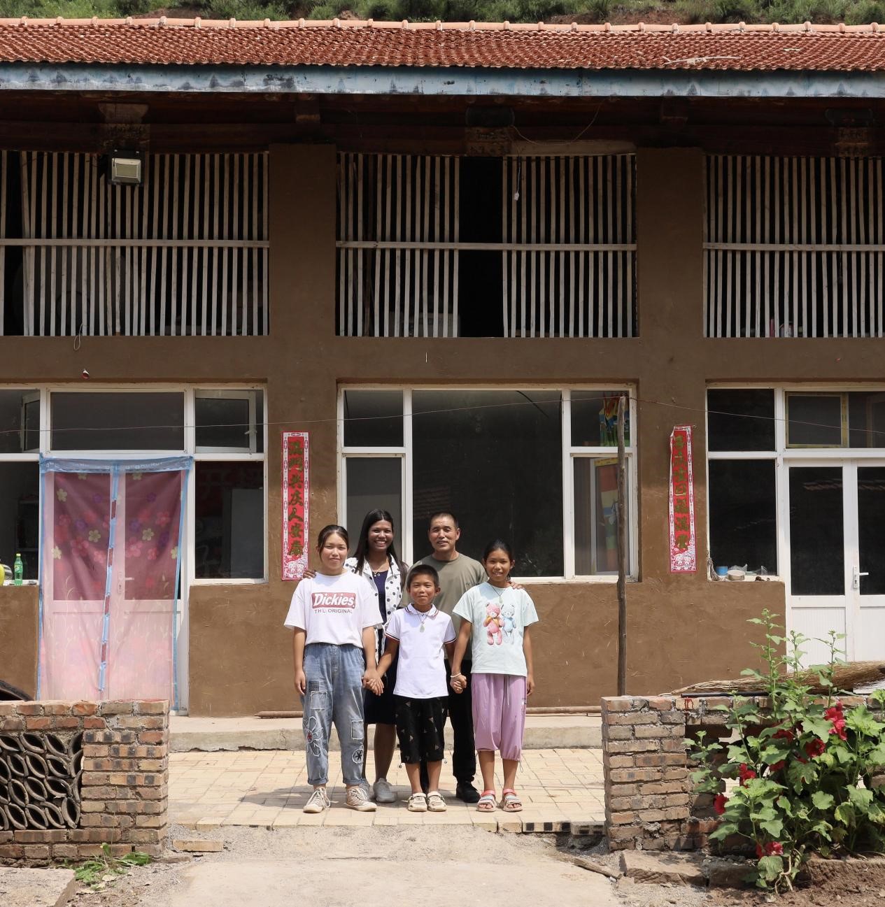 Ma Xiaoyue and her family pose for a family photo in front of their new house. (People’s Daily Online/Qiao Dong)