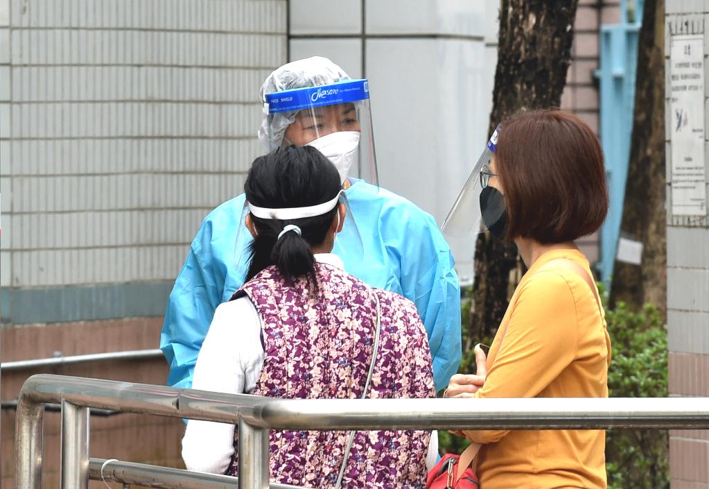 A medical worker guides citizens who are waiting for medical service in Hong Kong, south China, March 22, 2022. (Xinhua/Lo Ping Fai)