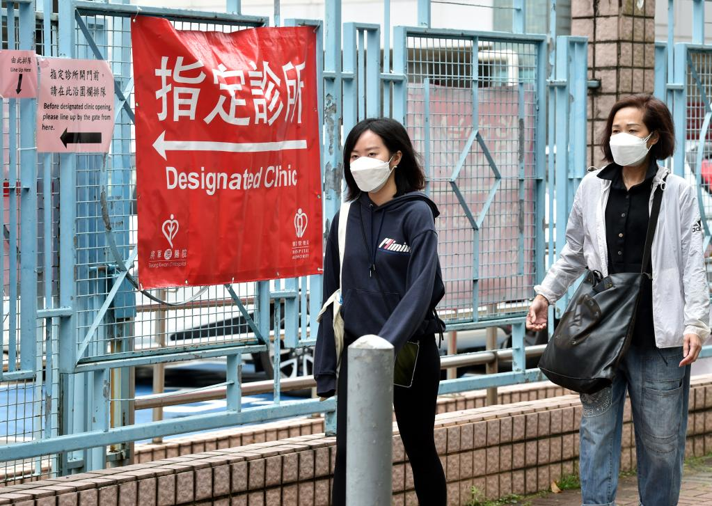 Citizens wearing face masks walk to a clinic in Hong Kong, south China, March 22, 2022. (Xinhua/Lo Ping Fai)