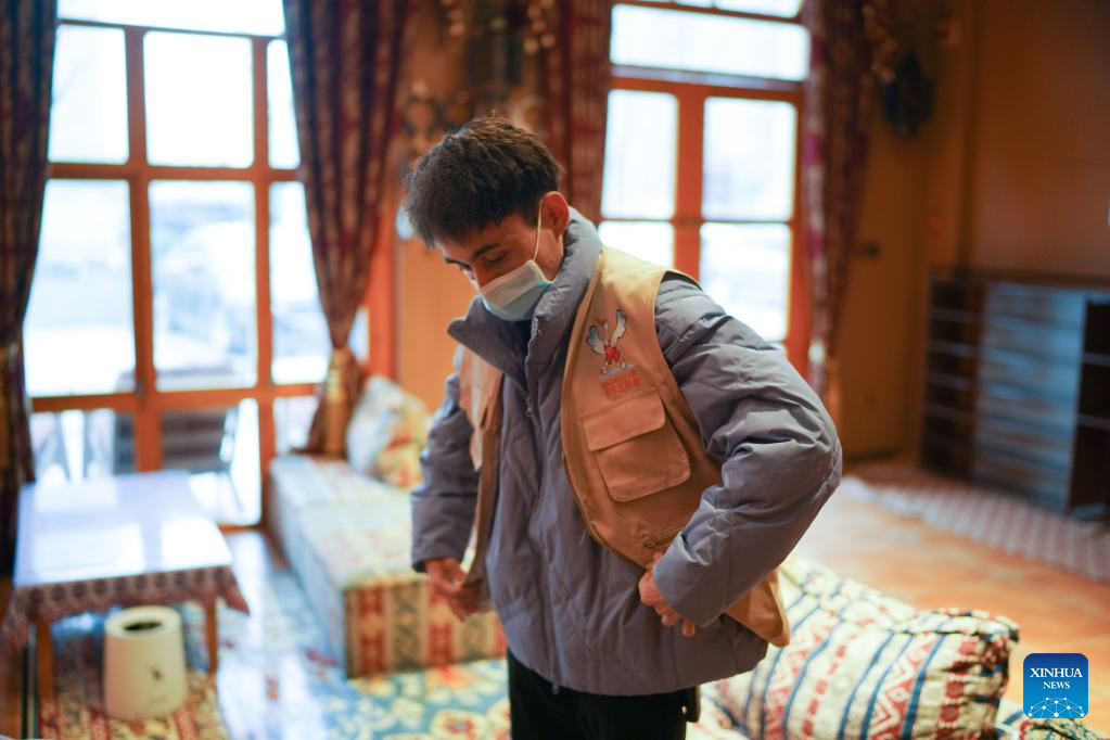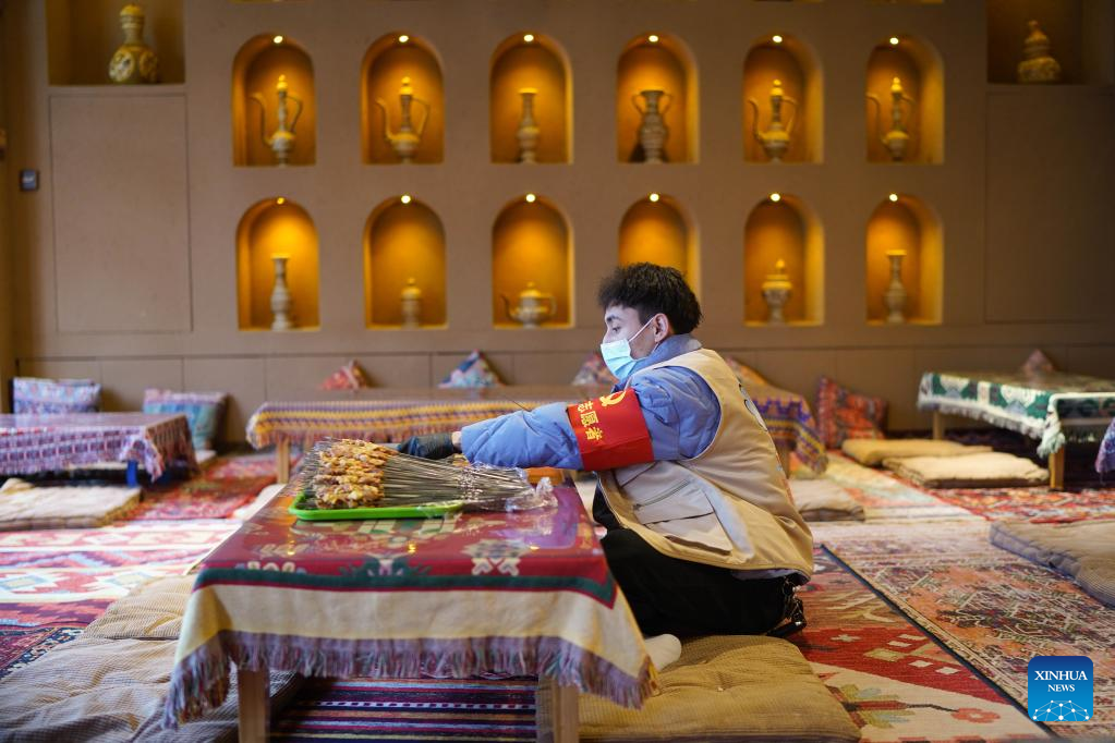 Miradil Mamtawla prepares for work in Nanchang, east China's Jiangxi Province, March 22, 2022. Miradil Mamtawla is from northwest China's Xinjiang Uygur Autonomous Region. The 29-year-old came to Nanchang in 2013 to attend university and started his own business after graduation. The COVID-19 outbreak in 2020 had a significant impact on his business. At the most difficult time, the local government provided loans and other supportive measures to help his business. After a resurgence of COVID-19 hit Nanchang this year, Miradil and his team joined a volunteer team, providing free meals to frontline essential workers. His team has already delivered over 1,000 naan buns. "The city of Nanchang helped me in the hardest time of my life, and now it's time for me to repay that kindness," he said. (Xinhua/Zhou Mi)