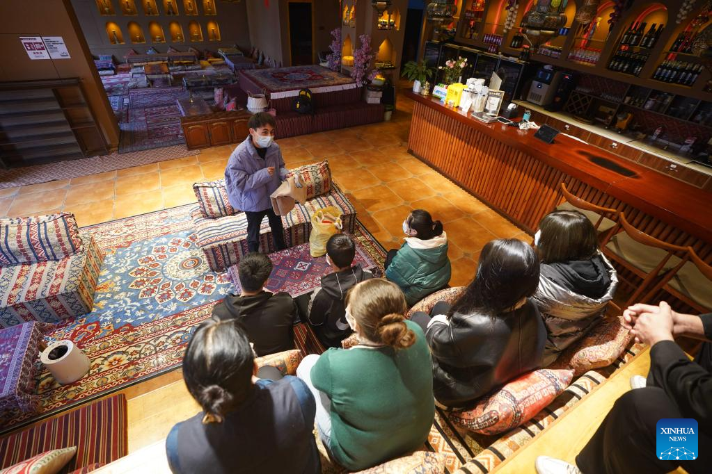 Miradil Mamtawla meets with his team in Nanchang, east China's Jiangxi Province, March 22, 2022. Miradil Mamtawla is from northwest China's Xinjiang Uygur Autonomous Region. The 29-year-old came to Nanchang in 2013 to attend university and started his own business after graduation. The COVID-19 outbreak in 2020 had a significant impact on his business. At the most difficult time, the local government provided loans and other supportive measures to help his business. After a resurgence of COVID-19 hit Nanchang this year, Miradil and his team joined a volunteer team, providing free meals to frontline essential workers. His team has already delivered over 1,000 naan buns. "The city of Nanchang helped me in the hardest time of my life, and now it's time for me to repay that kindness," he said. (Xinhua/Zhou Mi)
