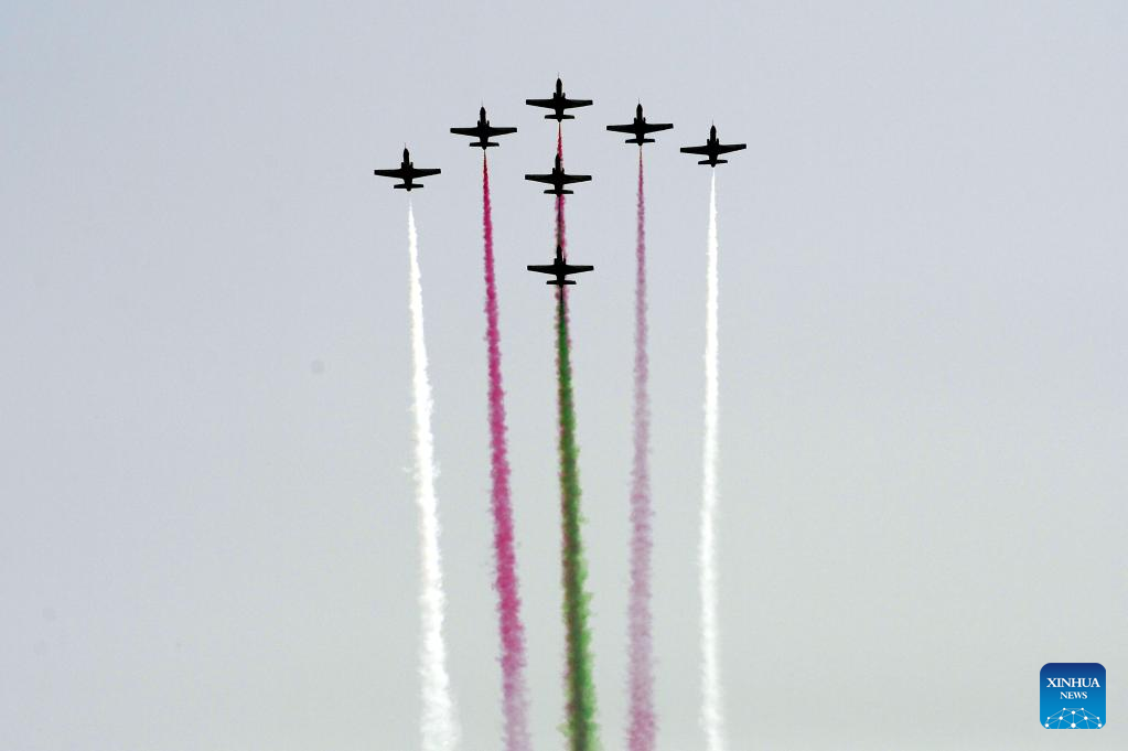 Pakistani jets perform during the Pakistan Day military parade in Islamabad, capital of Pakistan on March 23, 2022. Pakistan Day, also known as the Pakistan Resolution Day or Republic Day, is celebrated annually on March 23. (Xinhua/Ahmad Kamal)