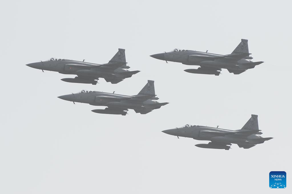 Pakistani fighter jets perform during the Pakistan Day military parade in Islamabad, capital of Pakistan on March 23, 2022. Pakistan Day, also known as the Pakistan Resolution Day or Republic Day, is celebrated annually on March 23. (Xinhua/Ahmad Kamal)
