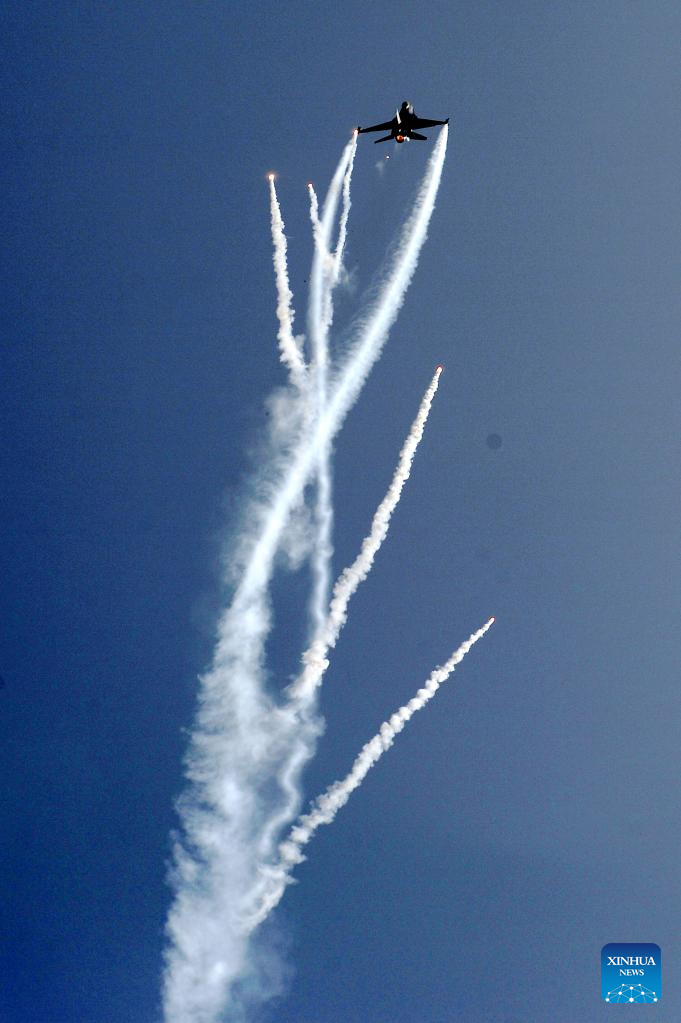 A Pakistani fighter jet performs during the Pakistan Day military parade in Islamabad, capital of Pakistan on March 23, 2022. Pakistan Day, also known as the Pakistan Resolution Day or Republic Day, is celebrated annually on March 23. (Xinhua/Ahmad Kamal)