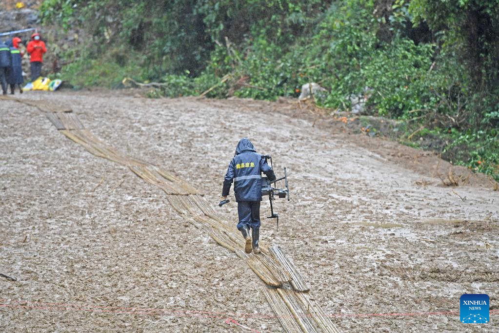 Affected by continuous rainfall, the site of Monday's plane crash is slippery and muddy, and the search and rescue work has been hindered to some extent.