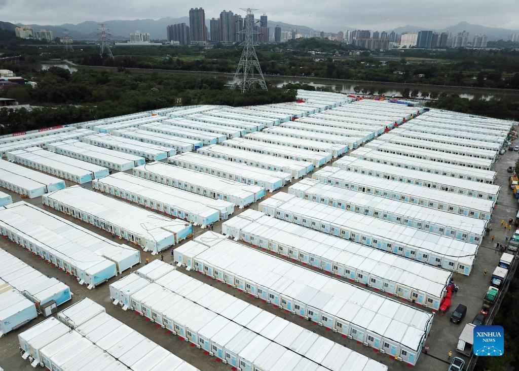 Aerial photo taken on March 24, 2022 shows the community isolation facility (CIF) in Yuen Long, south China's Hong Kong. The CIF in Hong Kong's Yuen Long, constructed with the support from the mainland, was handed over to the Hong Kong Special Administrative Region (HKSAR) government on Thursday, marking the full completion of the first phase of mainland-aided medical facilities in Hong Kong. (Xinhua/Li Gang)
