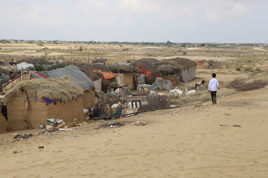 A child walks in a village for internally displaced persons (IDPs) in Hajjah province, northern Yemen on Feb. 1, 2022. (Photo by Mohammed Al-Wafi/Xinhua)