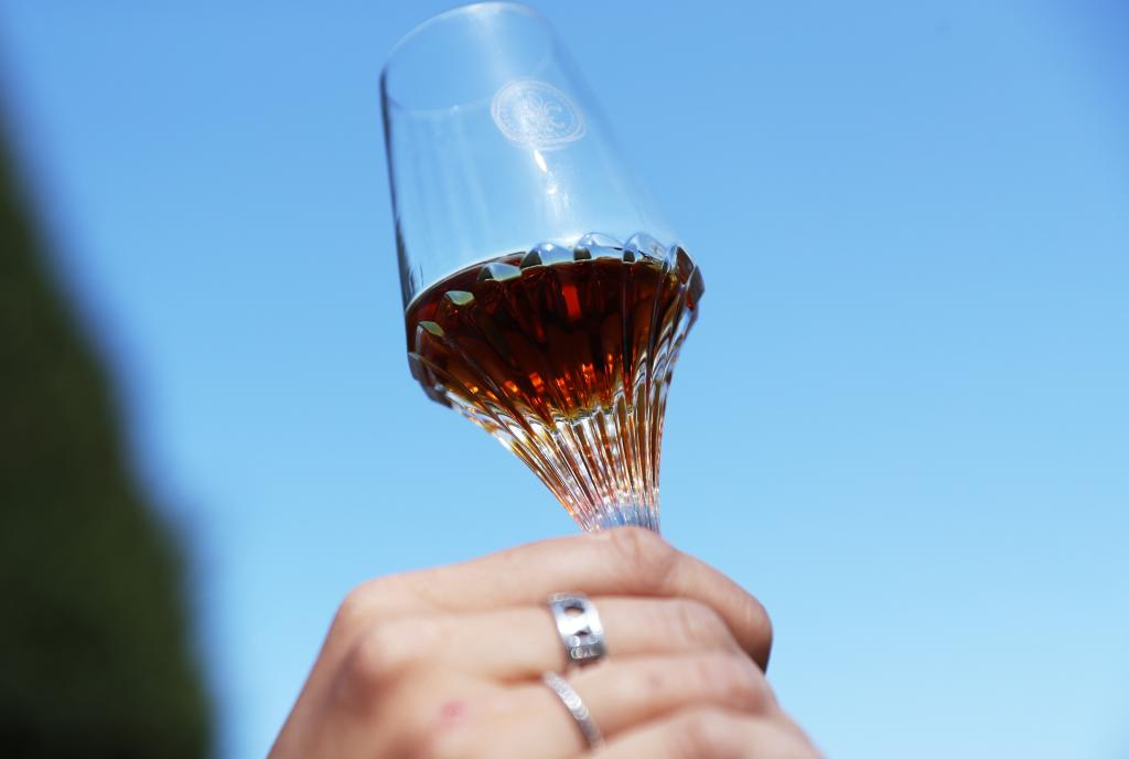A glass of Remy Martin LOUIS XIII cognac is pictured in Cognac, southwestern France, March 23, 2022. Cognac/eau-de-vie de cognac/eau-de-vie des charentes is listed in the China-EU agreement on geographical indications. (Xinhua/Gao Jing)