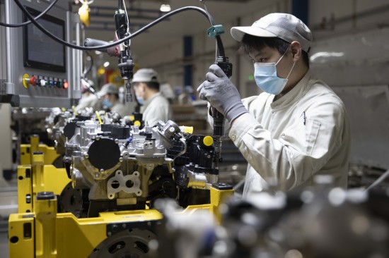 A staff member works at Dongan Auto Engine Co., Ltd. in Harbin, northeast China's Heilongjiang Province, March 23, 2022. (Xinhua/Zhang Tao)