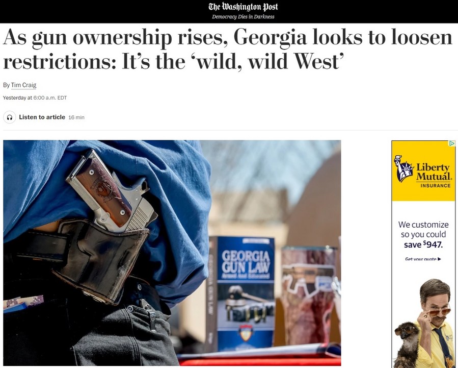 "The legislation, a setback for gun control advocates in a state that has been trending left, has opened up sharp cultural divisions here in Georgia," said the report.