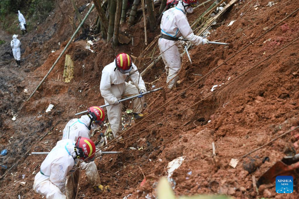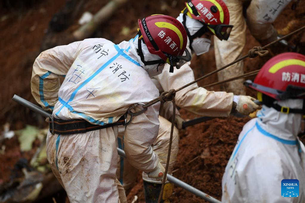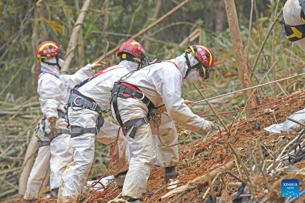Search and rescue work continues at plane crash site in Tengxian County, Guangxi