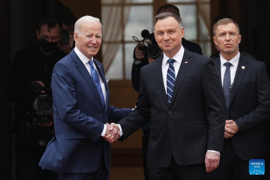 U.S. President Joe Biden (1st L) holds talks with Polish President Andrzej Duda (2nd R) in Warsaw, Poland, March 26, 2022. (Photo by Jacek Szydlowski/Xinhua)
