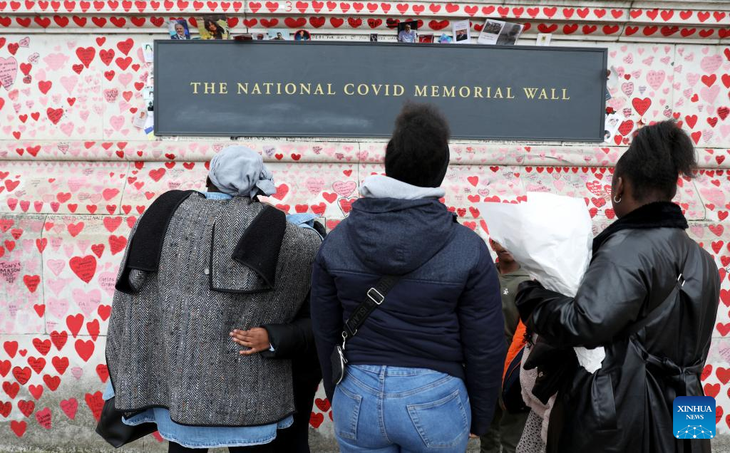 People stand by the National COVID Memorial Wall in London, Britain, March 27, 2022. (Xinhua/Li Ying)