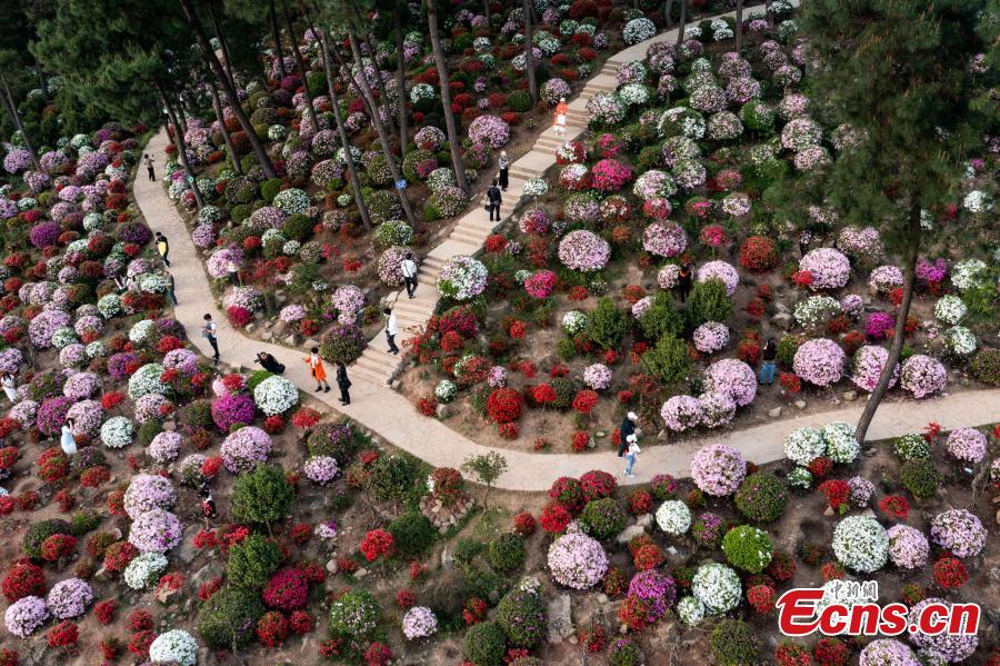 Azalea flowers are in full blossom on Nanshan Mountain in Fangniu village, Chongqing, southwest China, March 28, 2022. Some 3 hectares of blooming azalea shrubs created an amazing sight for tourists. (Photo: China News Service/He Penglei)