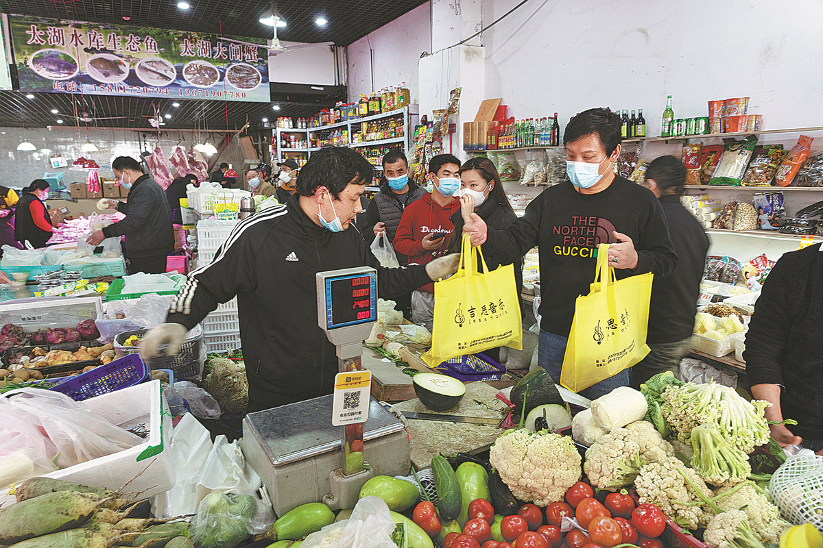 Residents select vegetables at a grocery store in Changning district, Shanghai, on Tuesday. GAO ERQIANG/CHINA DAILY