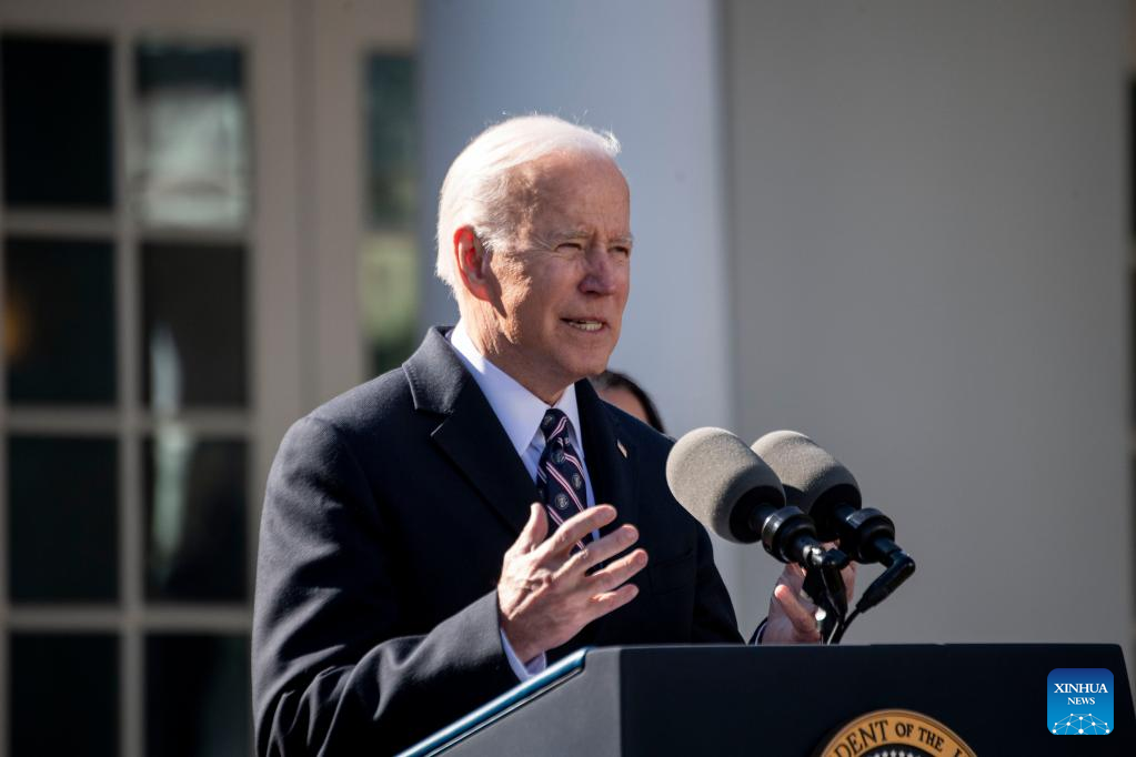 U.S. President Joe Biden speaks after signing the Emmett Till Anti-Lynching Act in the Rose Garden of the White House in Washington, D.C., the United States, on March 29, 2022. Biden signed legislation Tuesday afternoon to make lynching a federal hate crime for the first time in American history. (Xinhua/Liu Jie)