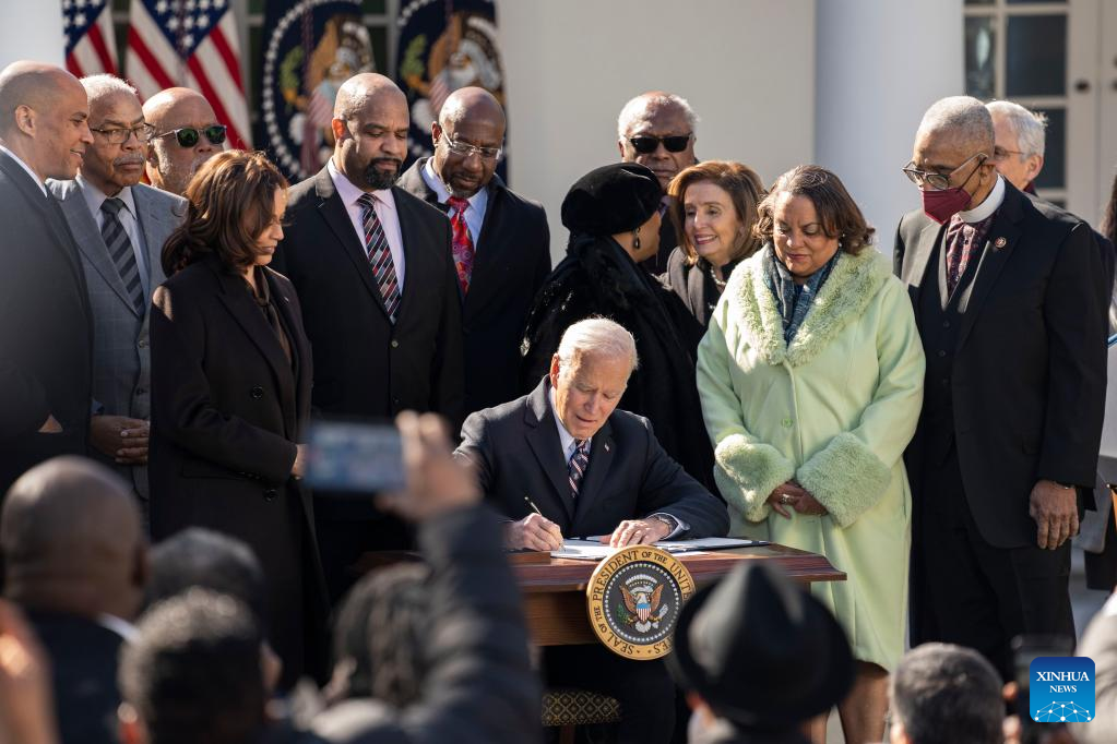 WASHINGTON, March 29 (Xinhua) -- U.S. President Joe Biden signed legislation Tuesday afternoon to make lynching a federal hate crime for the first time in American history.