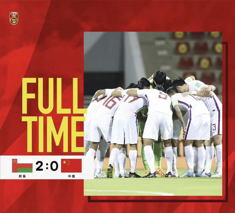 China lost to Oman 2-0 in the FIFA World Cup qualifier on March 30, 2022. (Photo courtesy of the Chinese national football team)