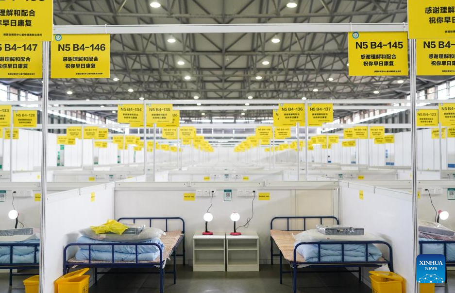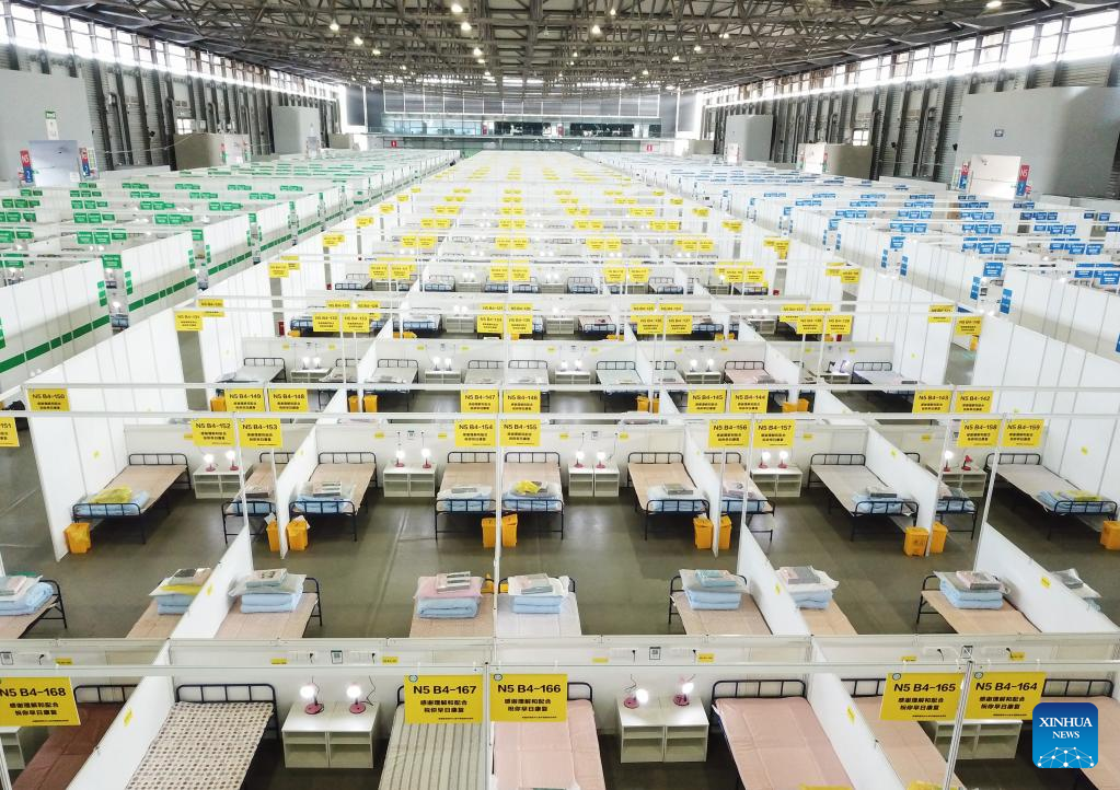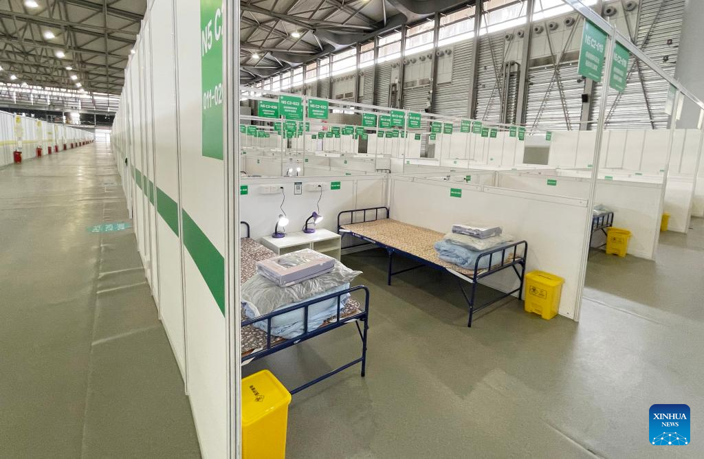 Photo taken on March 30, 2022 shows the quarantine zone at the Shanghai New International Expo Center in east China's Shanghai. Shanghai converts the expo center into a venue to quarantine mild cases and asymptomatic carriers amid the latest COVID-19 resurgence. It will provide over 15,000 beds after completion. (Xinhua/Ding Ting)