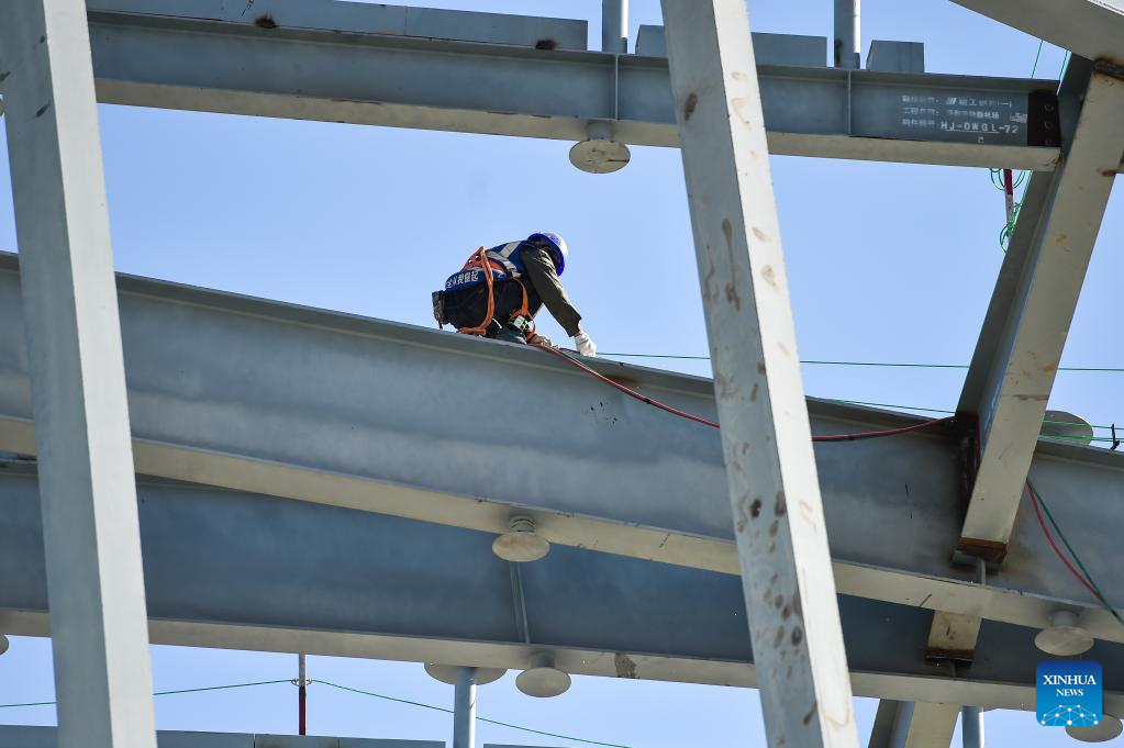 Construction on the new airport in Hohhot has been resumed recently, after a period of suspension due to the latest resurgence in COVID-19 infections. (Xinhua/Liu Lei)