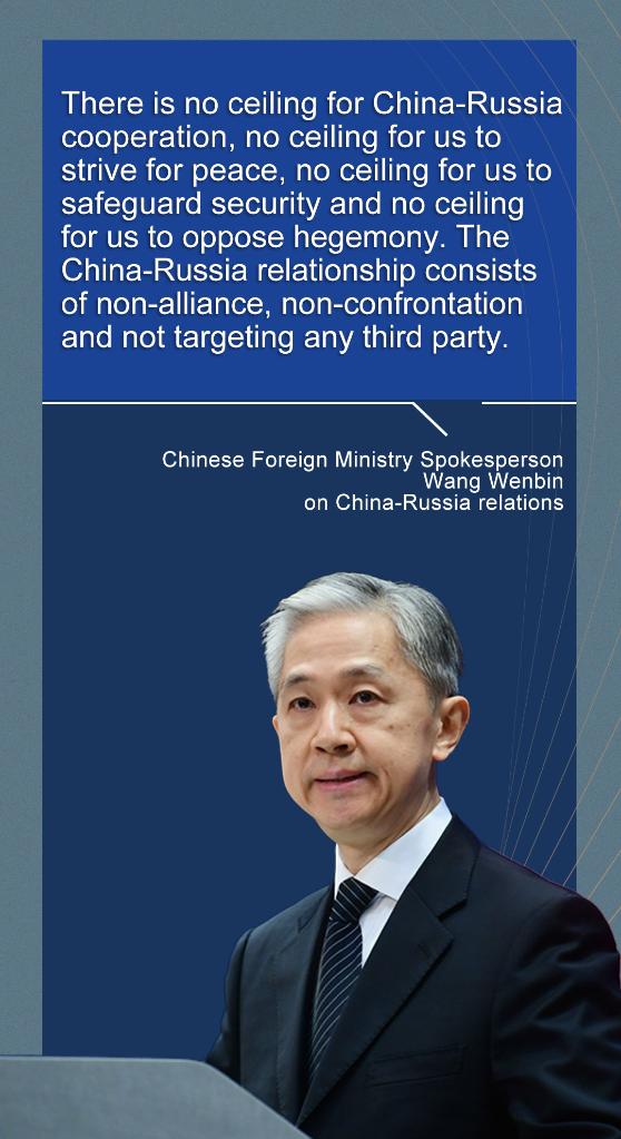 Spokesperson Wang Wenbin made the remarks at a daily press briefing when asked about China-Russia relations.