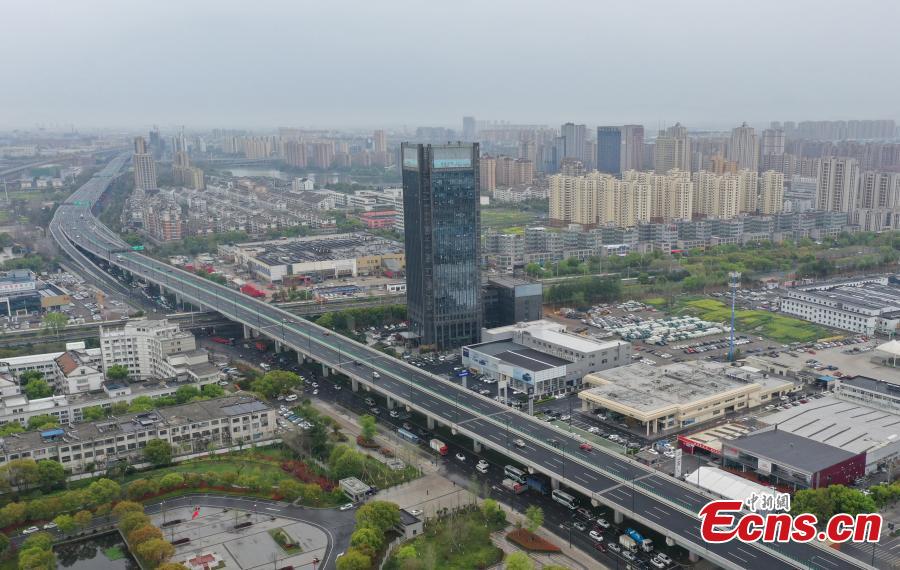 Drone photo shows a view of Yuyue superhighway in Shaoxing, Zhejiang Province, March 30, 2022. (Photo: China News Serive/Wang Gang)