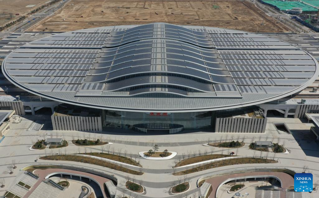 Aerial photo taken on March 31, 2022 shows the Xiong'an Railway Station in Xiong'an New Area, north China's Hebei Province. Dubbed China's youngest city and a "city of the future," Xiong'an New Area marks its fifth anniversary on Friday. China announced plans to establish Xiong'an New Area on April 1, 2017, to relieve Beijing of functions non-essential to its role as the national capital and advance the coordinated development of the Beijing-Tianjin-Hebei region.By the end of 2021, construction has begun on 177 key projects in Xiong'an, with a total investment of 618.4 billion yuan (97.2 billion U.S. dollars). Sixty of them have been completed. So far, the major roads to the city, the main streets in the city, the Ecological Corridor, and the urban water system have taken shape.(Xinhua/Yang Shiyao)