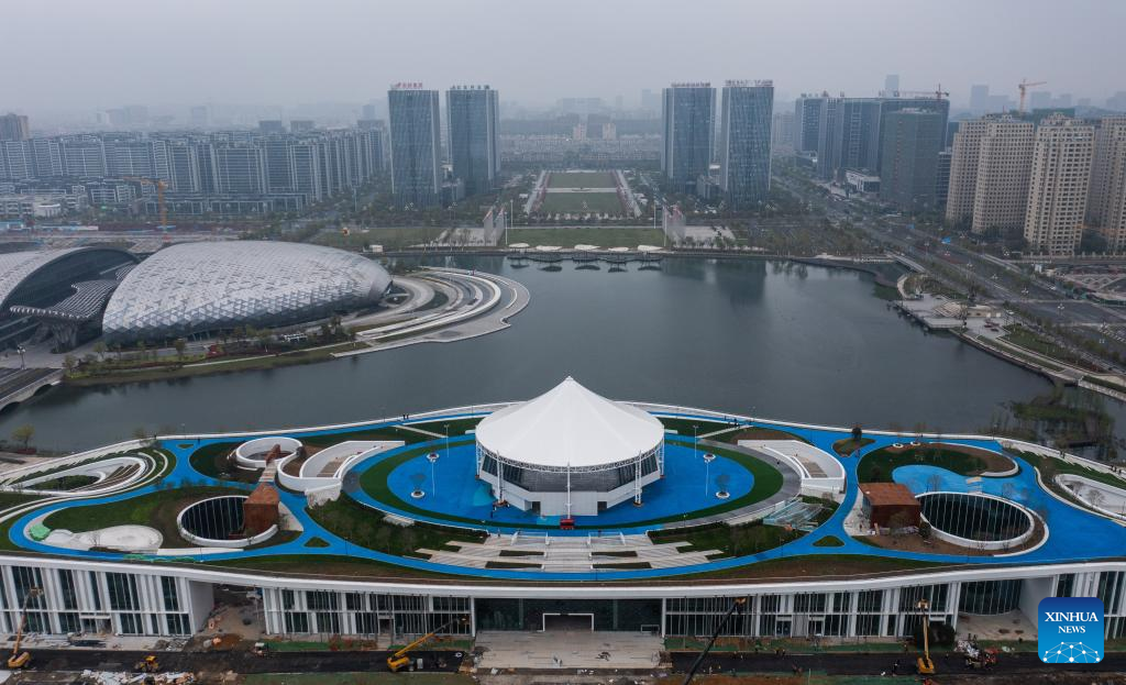 Areial photo taken on Feb. 25, 2022, shows a view of China Hangzhou Esports Centre, a venue of the 19th Asian Games Hangzhou 2022 in Hangzhou, east China's Zhejiang Province. (Xinhua)