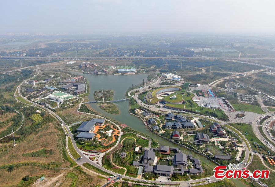 Drone photo taken on Oct. 1, 2021 shows the Xiongan Jiaoye Park in Xiongan New Area, north China's Hebei Province. (Photo: China News Service/Han Bing)