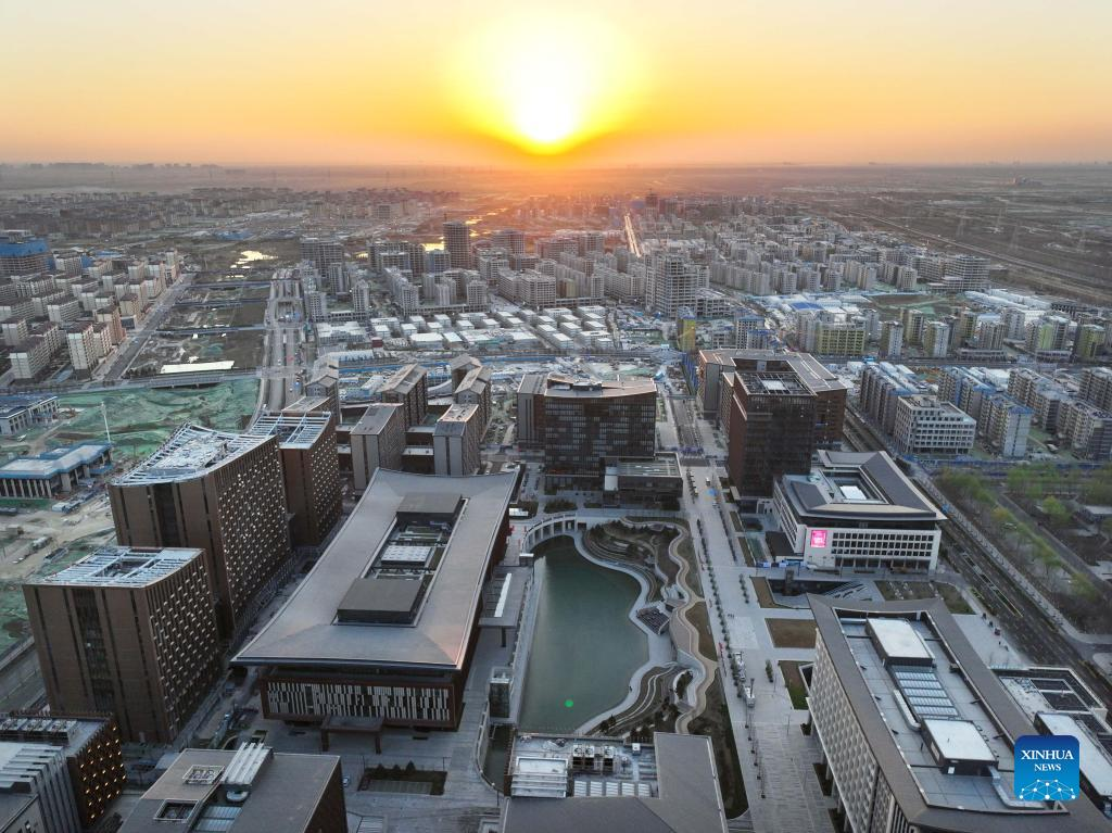 Aerial photo taken on April 1, 2022 shows the business service center in Xiong'an New Area, north China's Hebei Province. (Xinhua/Xing Guangli)
