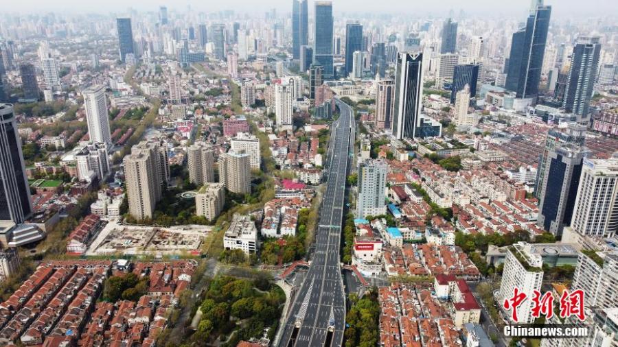 Photo taken on April 1, 2022 shows the empty elevated Yan'an Road in Puxi, areas west of the Huangpu River, during temporary closed-off management in areas west of the Huangpu River on Friday. (Photo: China News Service/Yin Liqing)